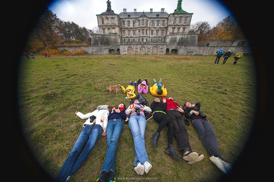 Это было второе утро во Львове, нам жутко хотелось спать, но подъем намечался на 6 утра. Загрузились по машинам и в путь. Приехали...никого...ворота закрыты..туманищеееее!!! нашли калитку, зашли и давай обходить его со всех сторон! а там жеж не все так просто. там непонятные, скользкие и узкие тропинки, крутые спуски и одна вода вокруг. гуляли-бродили-фотографировали, пока уже устали и как раз перед уходом, приезжает дядечка на мотороллере. а это оказывается сторож! ура! в общем он нас пустил побродить по замку...ооо а я это так люблю!